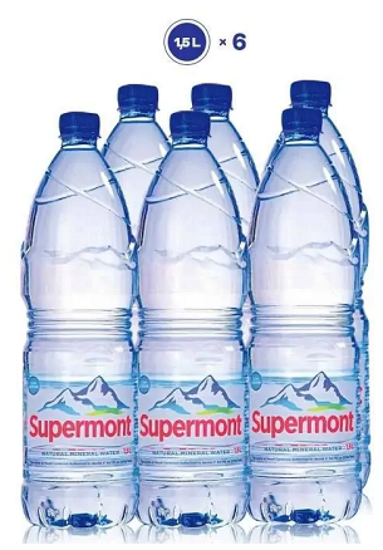 L’eau minérale naturelle Supermont est disponible sur le marché en formats de 30Cl; 0,5L; 1L; 1,5 L; 5L; 10L