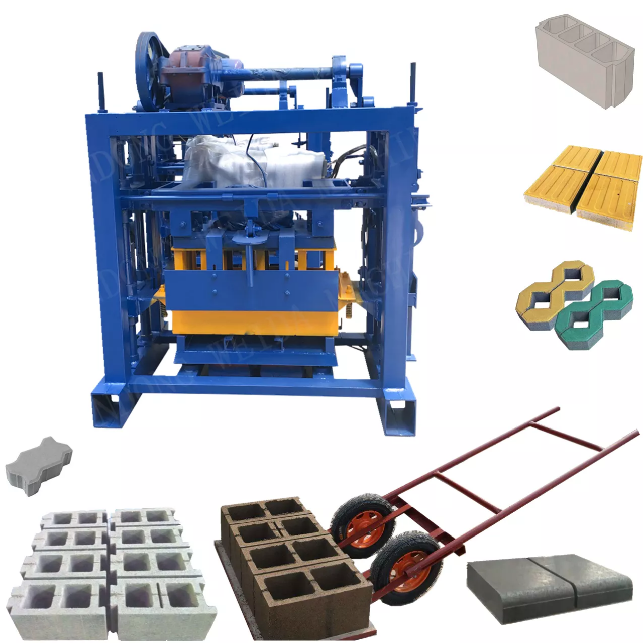 Machine de fabrication de blocs de briques solides creuses, Semi-automatique, QTJ4-40Est une petite machine de moulage de bloc de béton semi-automatique qui est spécialisée dans les blocs de construction tels que bloc creux, bloc solide, bloc de pavage, brique poreuse, bordure de route, brique d'herbe, brique d'arbre annulaire et autres produits en béton. Le matériau peut être des cendres volantes, des cendriers, du gabgue de charbon et d'autres résidus industriels.